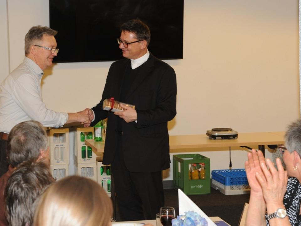 Dank richtete Alex Frei an alle Helfer, die sich für das Projekt verdient gemacht haben, allen voran Pfarrer Obrist. Die Übergabe eines Geschenkes und die Bekräftigung des Amtes als Pastoral-Pfarrer wurden mit grossem Applaus begleitet. Seine Einladung zu Apéro und Mittagessen war verbunden mit einem herzlichen Dankeschön an Küche und Service.
