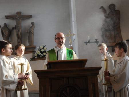 Nach den Worten von Pfarrer Obrist baten die Anwesenden im Eröffnungslied den Heiligen Geist um seine Kraft.