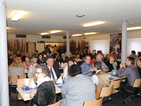 Gedankenaustausch und Gemeinschaft, verbunden mit einem Glas Wein oder Saft, dazu trafen sich die Besucher des Gottesdienstes anschliessend im Zentrum Dreitannen. Für Gäste mit Mittagessen waren die Tische im unteren Saal gedeckt. Die Firmanden unter der Leitung von Cornel Stadler leisteten einen Top-Service und die Küchen- und Buffetmannschaften boten beste Verpflegung. Übertroffen aber haben sich die vielen Dessert-Spenderinnen. Die riesige Auswahl an leckeren Torten, Kuchen und Cremen liess keine Wünsche offen. Herzlichen Dank.